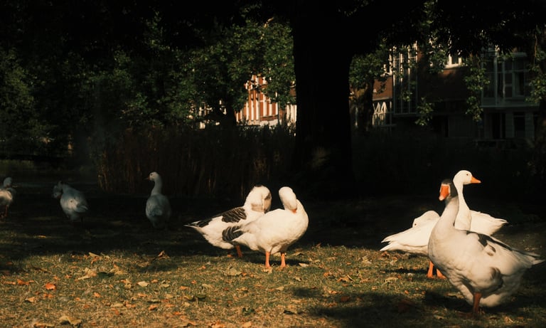 "Sunbathing geese"