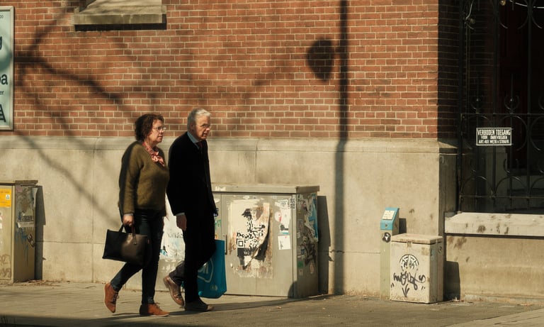 It was really nice weather outside. I decided to go on a walk and I came up with a new series: "In sync". It's a series of people walking in sync. A lot of people don't realise that when you're walking next to someone, you'll follow their rhythm of their steps... Just look outside, find 2 or more people walking together and you'll spot it yourself!